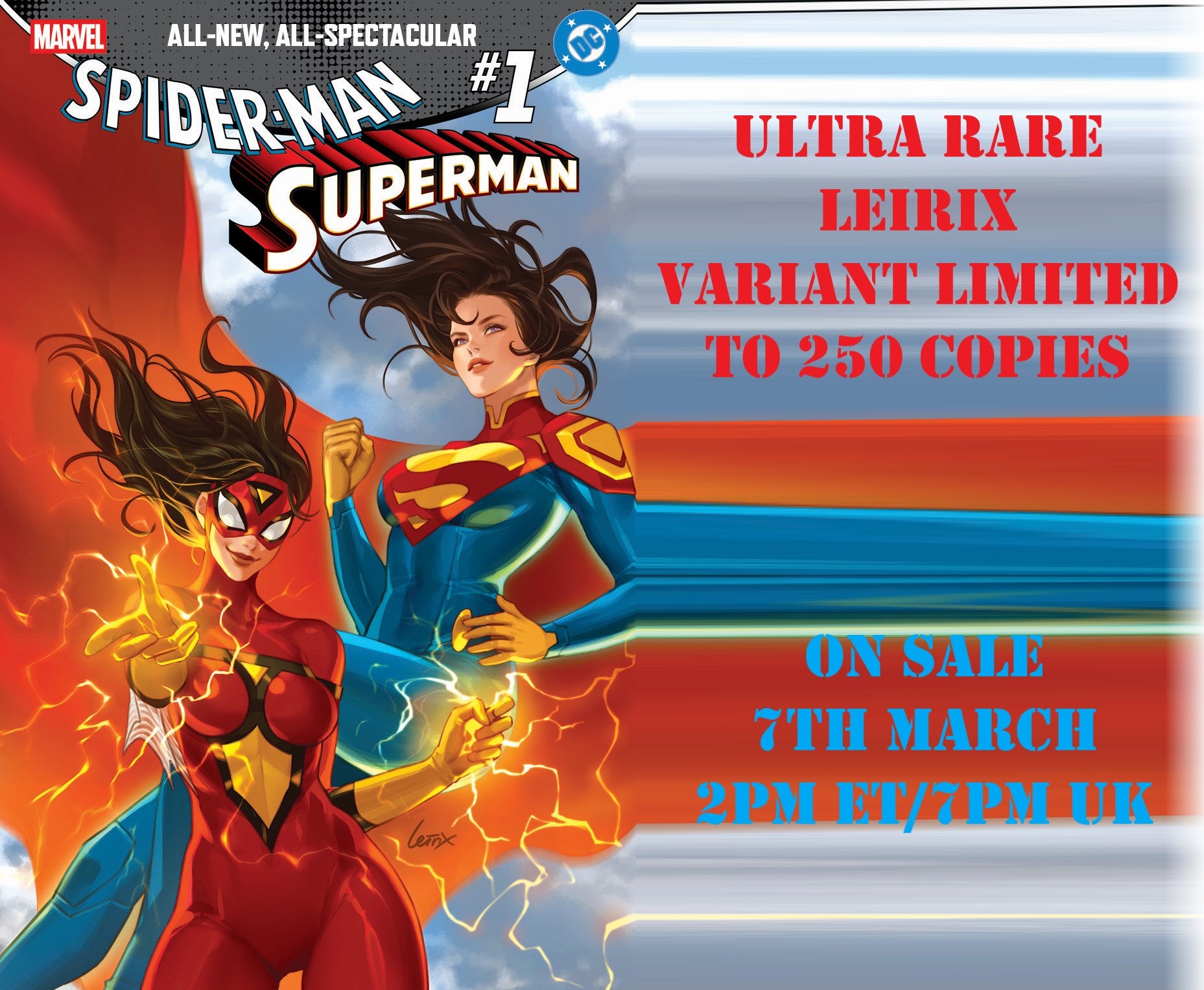 MARVEL/DC: SPIDER-MAN/SUPERMAN #1 LEIRIX LI ULTRA RARE VARIANT LIMITED TO 250 COPIES WITH NUMBERED COA