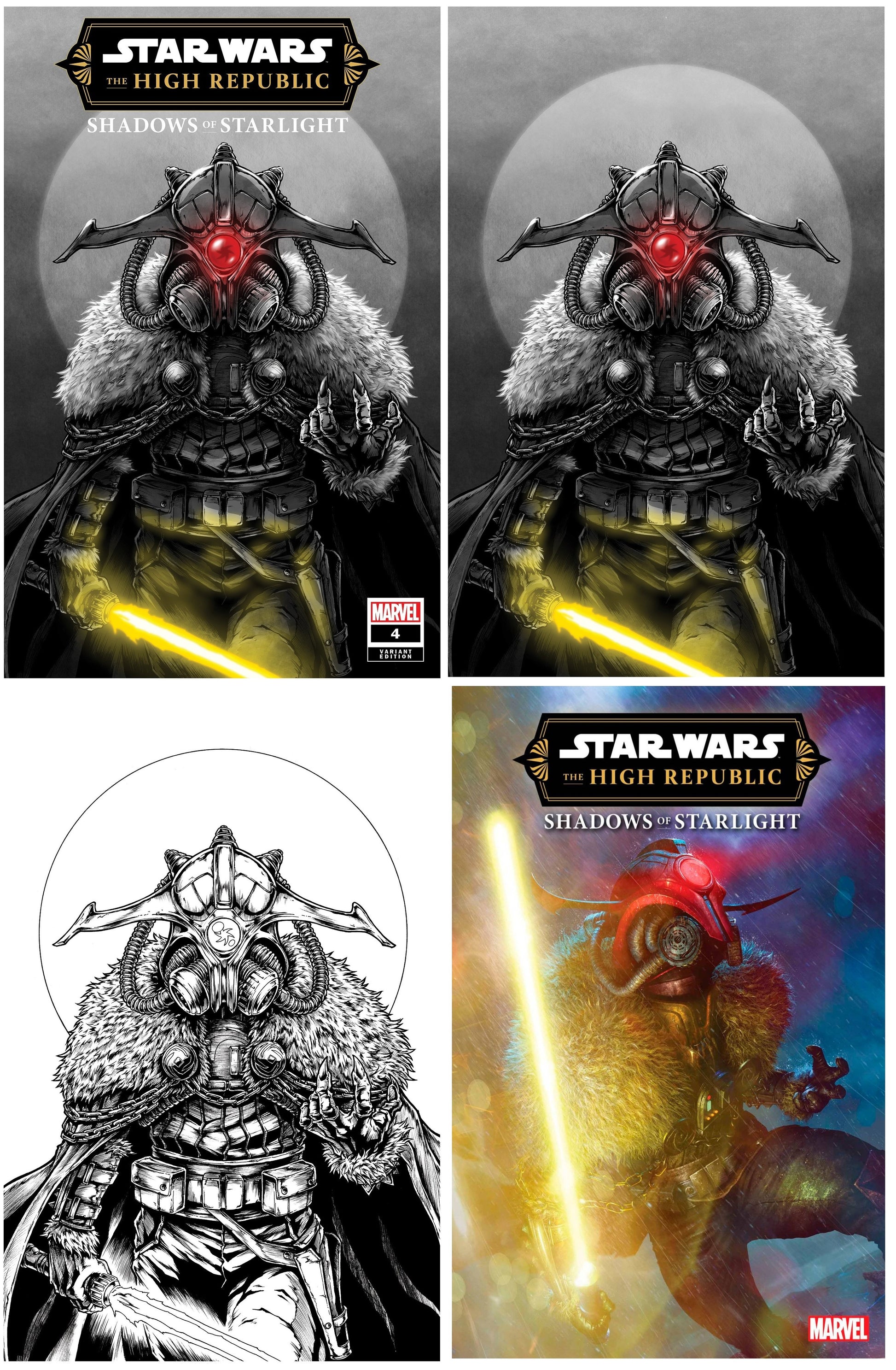 STAR WARS HIGH REPUBLIC SHADOWS OF STARLIGHT #4 TAKASHI OKAZAKI TRADE/VIRGIN VARIANT/SKETCH SET LIMITED TO 400 SETS WITH NUMBERED COA + 1:25 RAHZAAH